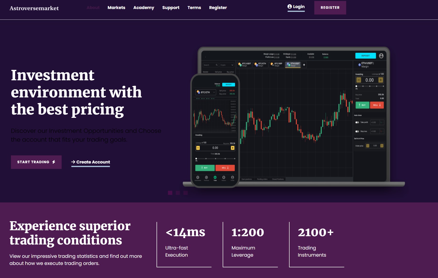 Что же на самом деле скрывается за вывеской Astroversemarket? По сути — банальный лжеброкер, один из многих. Контора сделана по уже давно обкатанному сценарию: берется готовый шаблон, меняется название, добавляются заманчивые лозунги — и можно выходить на «охоту» за доверчивыми пользователями. Поверьте, это не преувеличение.