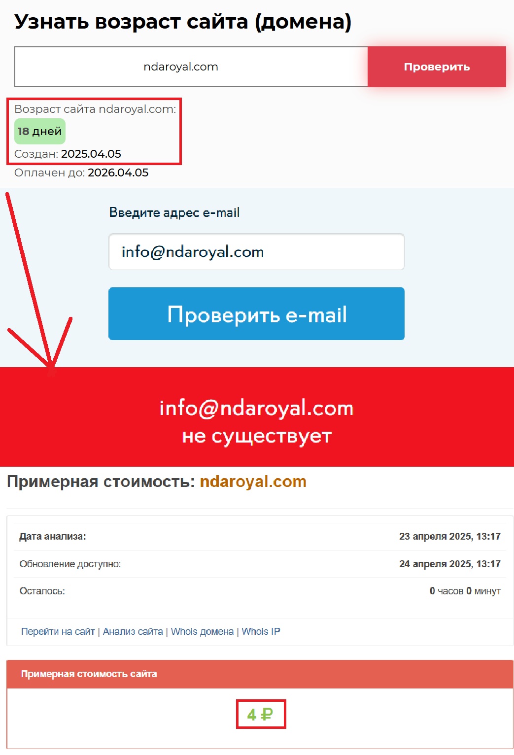 Проверили информацию по возрасту сайта — и тут все грустно. Проекту всего чуть больше двух недель. Вы только вдумайтесь. 18 дней — и они уже рассказывают о «многолетнем опыте». Это не просто преувеличение, это откровенный обман. Более того, сам домен стоит всего лишь четыре рубля. А это уже говорит о многом. Обычно это означает одно — собрали все, что могли, и готовятся переименоваться, сменить «шкуру» и начать все заново, под другим именем.