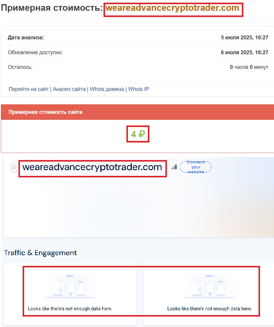 Как ищут жертв? Все по классике. Лепятся фейковые страницы в соцсетях, наполняются лживыми отзывами. Складывается впечатление, будто все вокруг уже “поднялись” с Advance Crypto Trader (weareadvancecryptotrader.com). Но это просто обман — все фальшивое. Заходите в Telegram или VK — и вместо живого комьюнити видите накрученные аккаунты и шаблонные фразы.