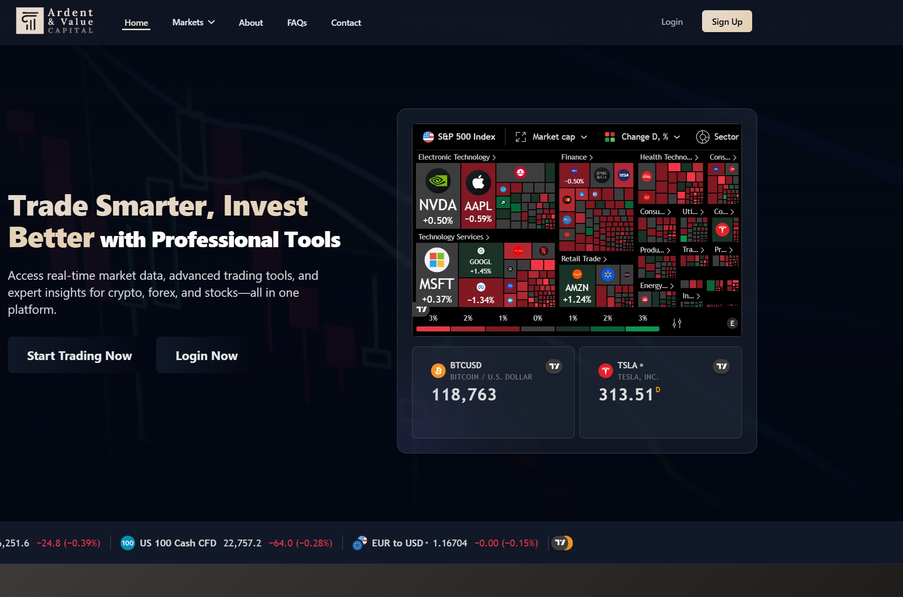 На первый взгляд, Ardent and Value Capital (ardentandvaluecapital.com) выглядит как надежная финансовая компания, готовая помочь вам приумножить капитал. Презентабельный сайт, громкие обещания — «Торгуйте разумнее, инвестируйте эффективнее с профессиональными инструментами». Но если копнуть чуть глубже, открывается страшная правда, неприятная для любого адекватного инвестора.