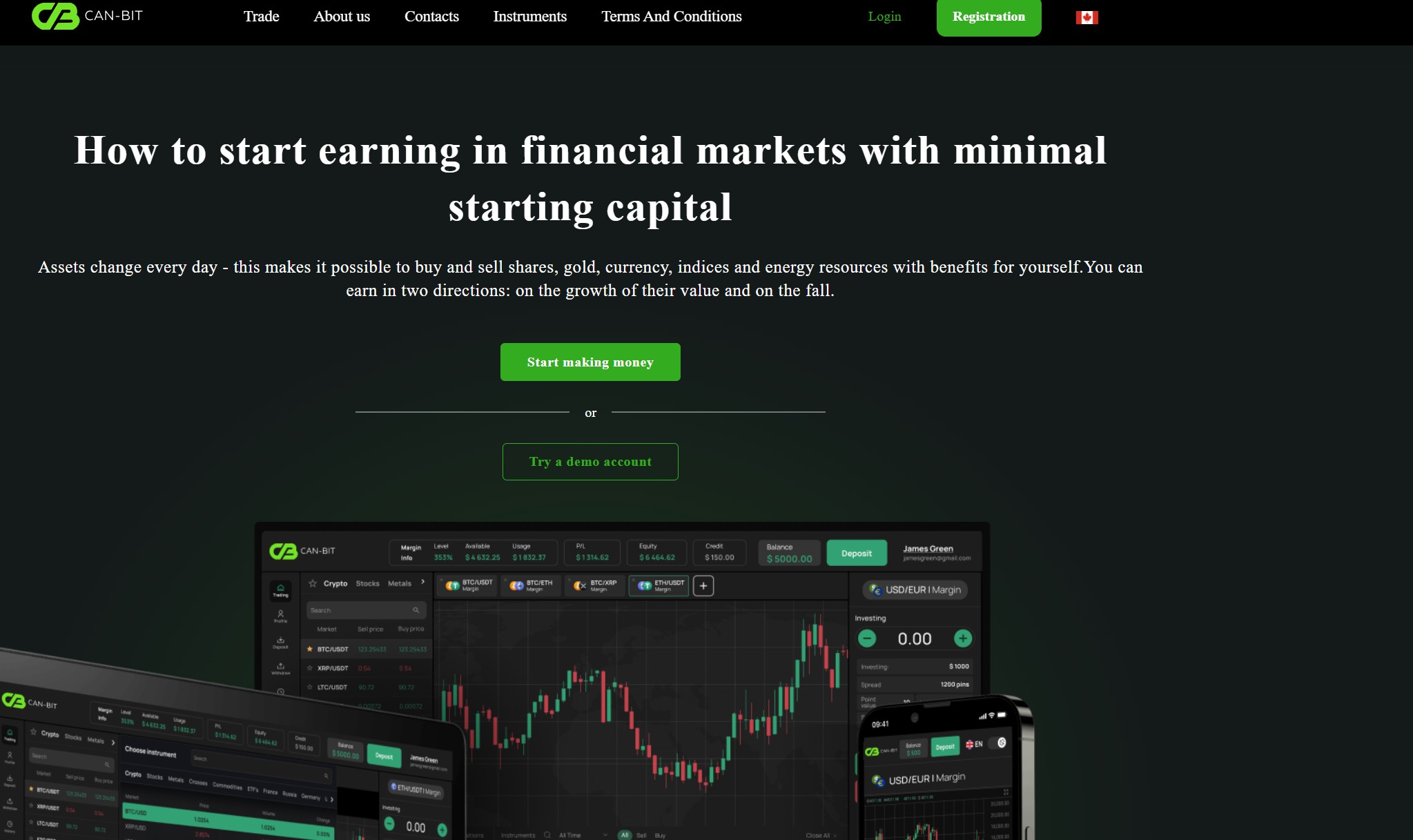 Как действуют современные финансовые мошенники? Под видом солидных инвестиционных платформ аферисты мастерски создают иллюзию легального и выгодного заработка. На примере сайта Can-Bit (can-bit.org) можно увидеть, как потенциальных инвесторов заманивают красивыми обещаниями. Здесь уверяют что научат нас “Как начать зарабатывать на финансовых рынках с минимальным стартовым капиталом“. Но за этой красивой картинкой один сплошной обман. Такие сайты — всего лишь ловушка, искусно оформленная, для того чтобы выманить средства у доверчивых пользователей.