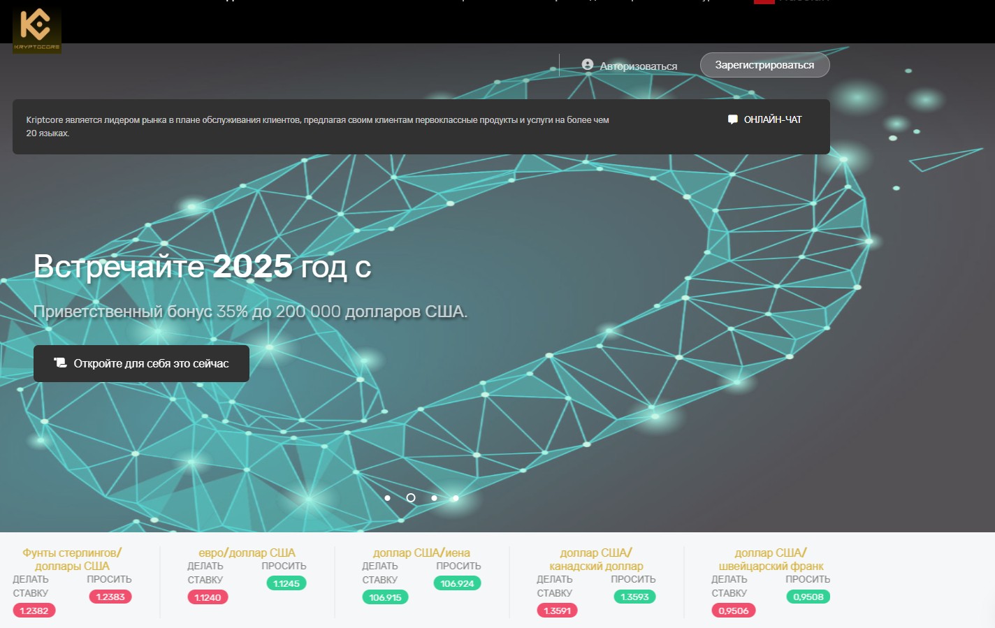 С каждым днем в интернете появляется все больше липовых «финансовых платформ», старающихся быть похожими на надежных брокеров. Очередная такая — Kriptcore (kriptcore.com). С виду — презентабельный сайт с заманчивыми условиями: моментальный старт, до 600% прибыли, поддержка 24/7 и “экспертная аналитика”. На деле — еще один проект, цель которого не умножить ваши средства, а оставить вас с нулем на счету.