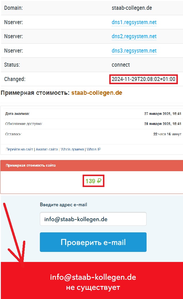 На сайте Staab Collegen указаны фейковые контакты. Электронная почта info@staab-kollegen.de неактивна, написать письмо и задать вопрос не получится. Телефон +0421/22410140 не существует, как и указанный адрес Schlachte 32