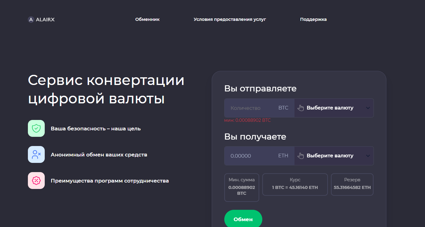 Основатели пытаются выдать его за законно функционирующий, качественный и безопасный обменник криптовалют. Однако на деле данный сервис представляет собой ничто иное, как обычную фальшивку, еще один лохотрон. И это можно с легкостью разглядеть, если проявить немного внимания и интереса к анализу платформы.