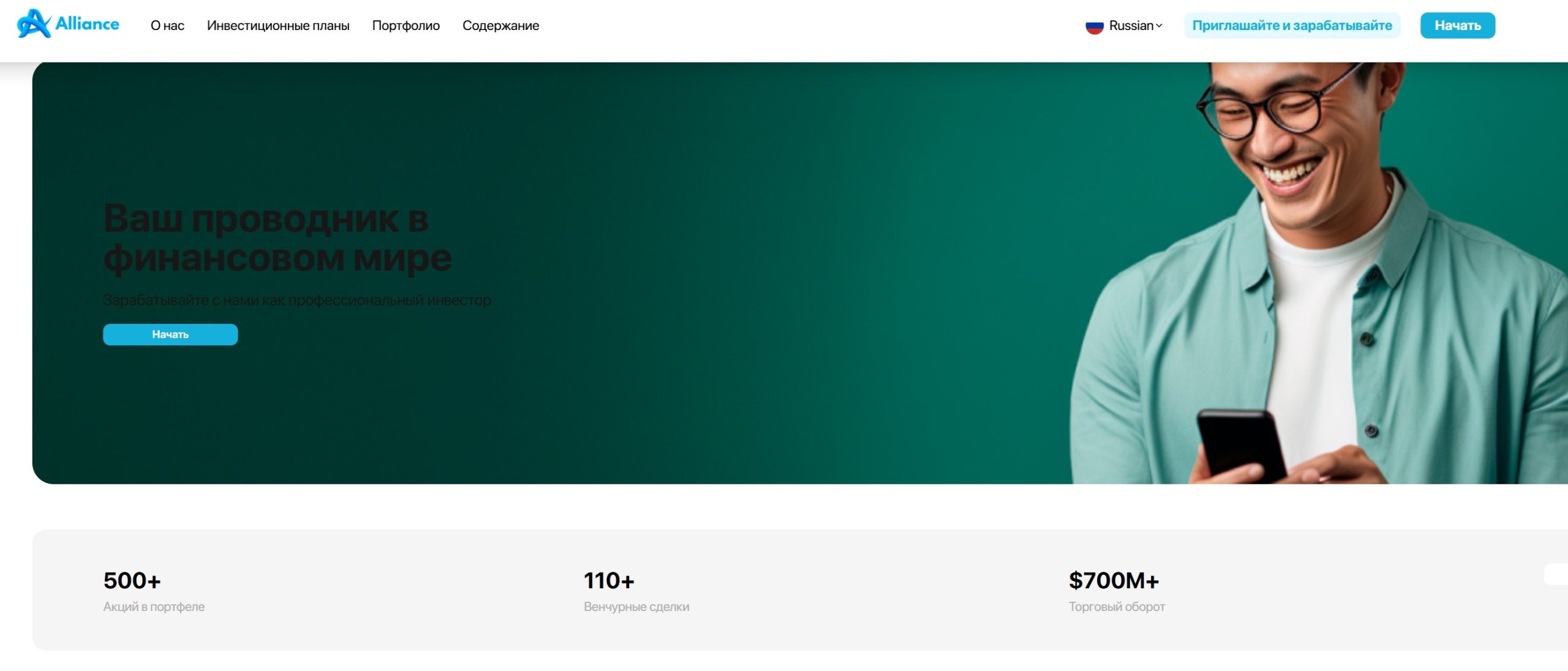 Если вы хоть раз задумывались об инвестициях на финансовом рынке, то, скорее всего, сталкивались с разного рода «перспективными» платформами, которые обещают чуть ли не мгновенное обогащение. Вроде бы заманчиво, но чем дальше смотришь — тем больше вопросов. Вот и Alliance — как раз из этой категории. Сначала все выглядит вполне пристойно: платформа с красивыми словами, обещаниями уникальных инструментов, возможности зарабатывать вместе с профессионалами. Но, как только начинаешь разбираться, вся эта мишура начинает рассыпаться буквально на глазах.