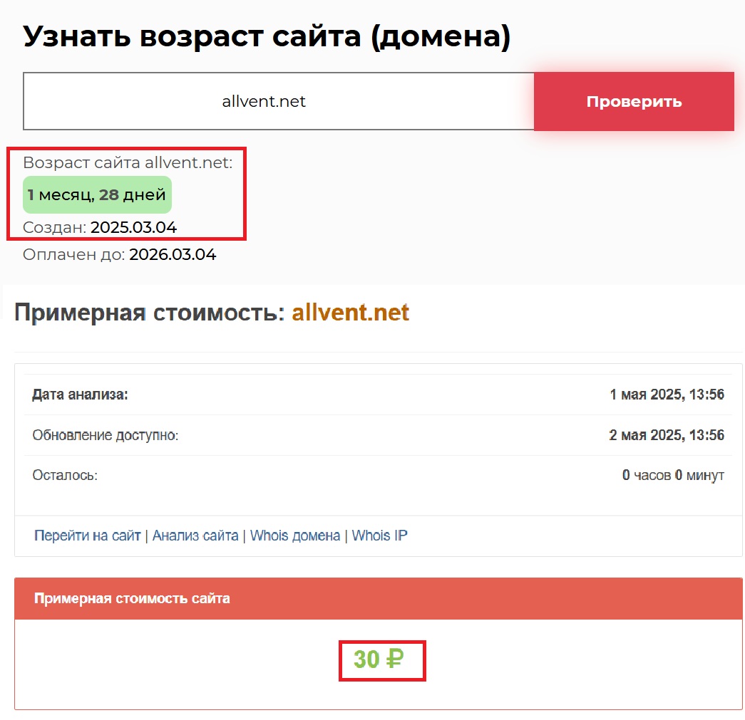Про лицензию говорить вообще не приходится. Ее просто нет. И это — ключевой момент. Платформа, у которой нет официальной регистрации и которая не подчиняется никаким регулирующим органам, не может иметь права работать с деньгами инвесторов. Это, мягко говоря, незаконно. Ну а тот факт, что сайт живет всего 1 месяц и 28 дней и куплен за 30 рублей — лишь подтверждение всему выше сказанному. Настоящие брокеры так себя не ведут.