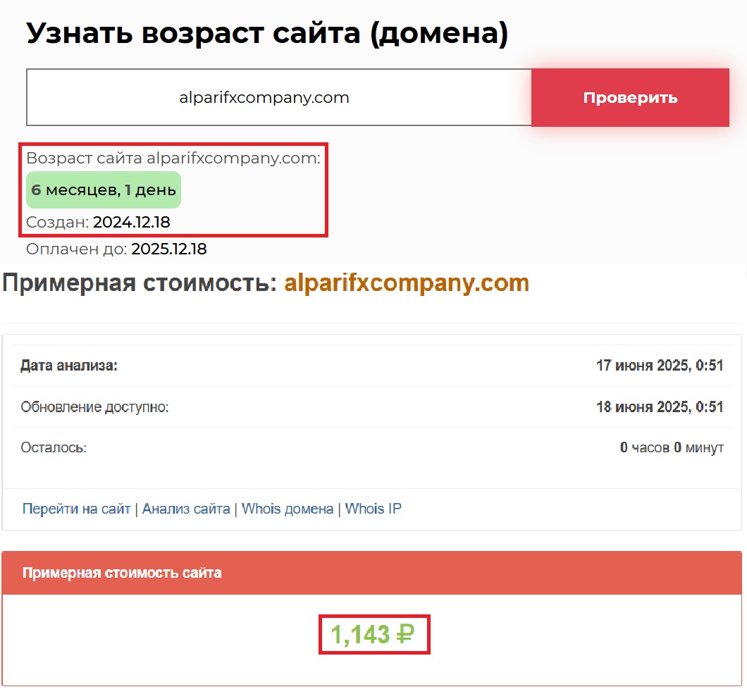 Нам не нужно было долго копаться в технических деталях, чтобы обнаружить очевидное. Достаточно было воспользоваться открытыми сервисами анализа сайтов. Что они показали? А показали они, что проект существует всего 6 месяцев и 1 день, а его стоимость составляет ровно 1143 рубля. Согласитесь, это совсем не то, что вы ожидаете от «опытной команды профессионалов», о которой так любят говорить сами создатели ресурса.
