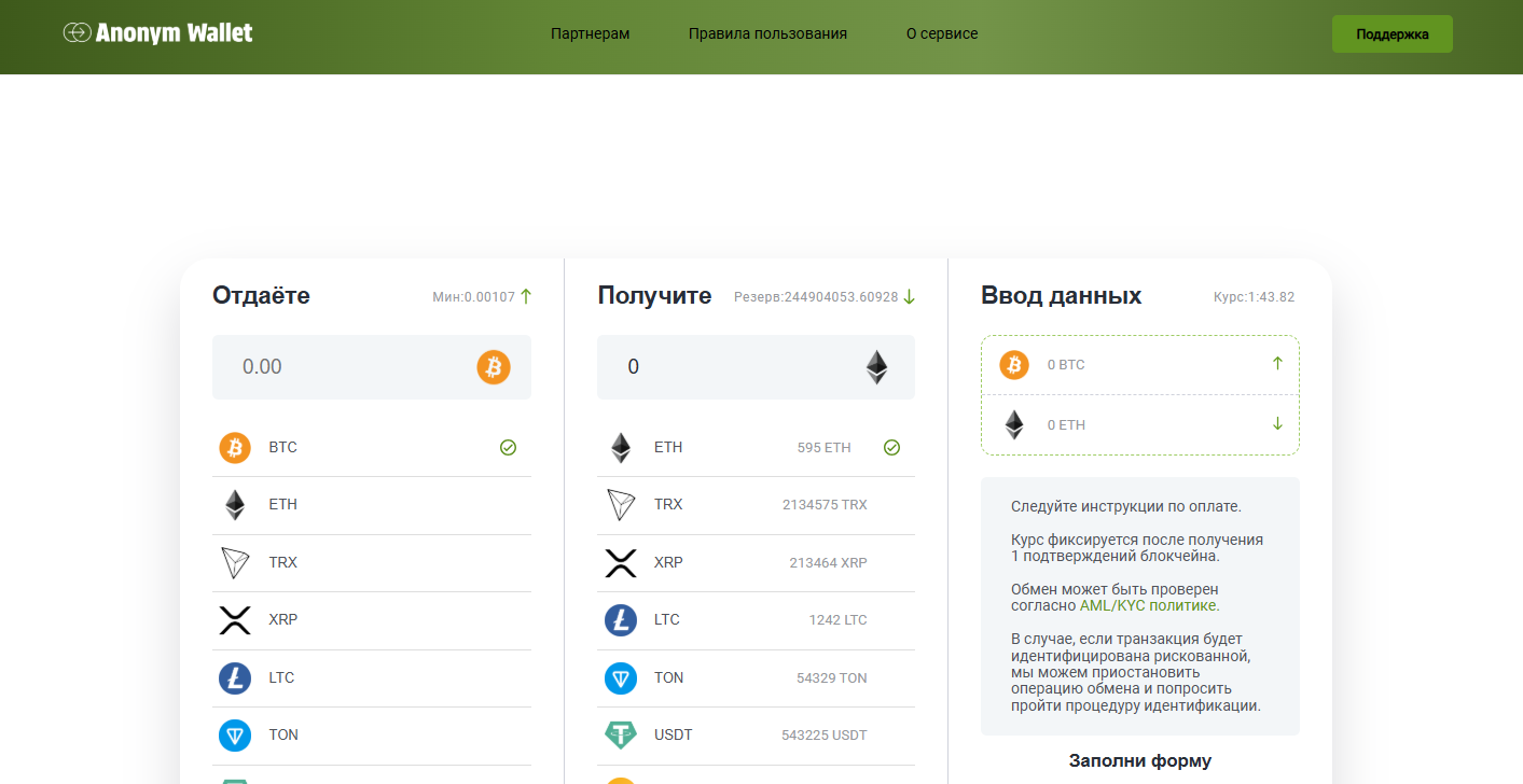 И снова на горизонте появился очередной мошеннический обменник. Проект с названием Anonym Wallet кажется вполне себе нормальным сервисом для обмена цифровых активов. Аккуратный сайт, сладкие обещания и уверенные заявления о безопасности и прибыльности привлекают пользователей. Однако на деле все это лишь иллюзия, придуманная аферистами с целью заманивания доверчивых юзеров в свою опасную ловушку.