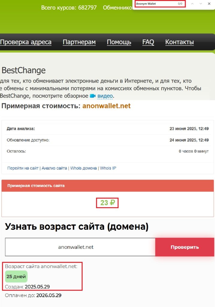Как выясняется, домен обменника начал функционировать лишь 29 мая 2025 года. И только подумайте сами: можно ли называть “авторитетным” сервис, работающий примерно месяц?
