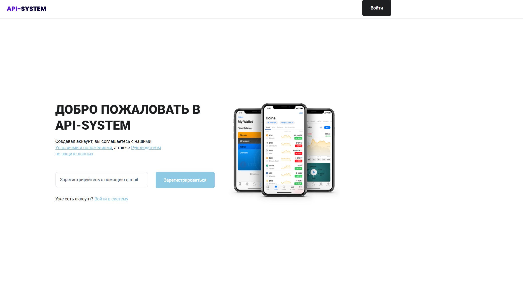 И стоит лишь заглянуть на сам сайт api-system.pro, чтобы понять — ничего серьезного здесь изначально и не планировалось. Страницы выглядят так, будто их слепили на коленке за пару вечеров. Никакого оригинального дизайна, никакой структуры, никакой заботы о пользователе. Да и зачем заморачиваться, если все это — временный проект, максимум на пару месяцев. А может, даже меньше. Простой макет, пара стоковых фото, набор общих слов про инвестиции — и вот уже перед нами «финансовая платформа».