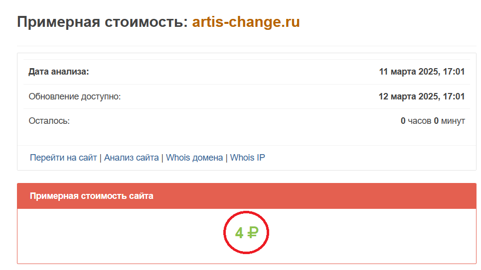 Странно выглядит и достаточно низкая примерная стоимость домена обменника, составляющая всего 4 рубля. Это слишком низкий показатель, который неприемлем для надежных проектов.