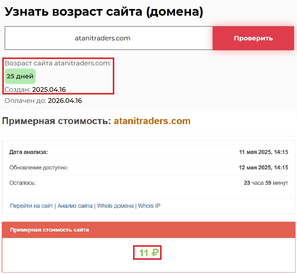 Теперь немного о “стажe”. На главной странице и в описаниях мелькает дата — 2010 год. Мол, мы на рынке уже более 15 лет. Звучит уверенно, но правда, как обычно, не столь впечатляющая. Atanitrades появилась в Интернете всего лишь 25 дней, что ничтожно мало для легальной компании. Стоимость всей этой клоунады составляет ровно 11 рублей. Разве это цена нормального брокера?