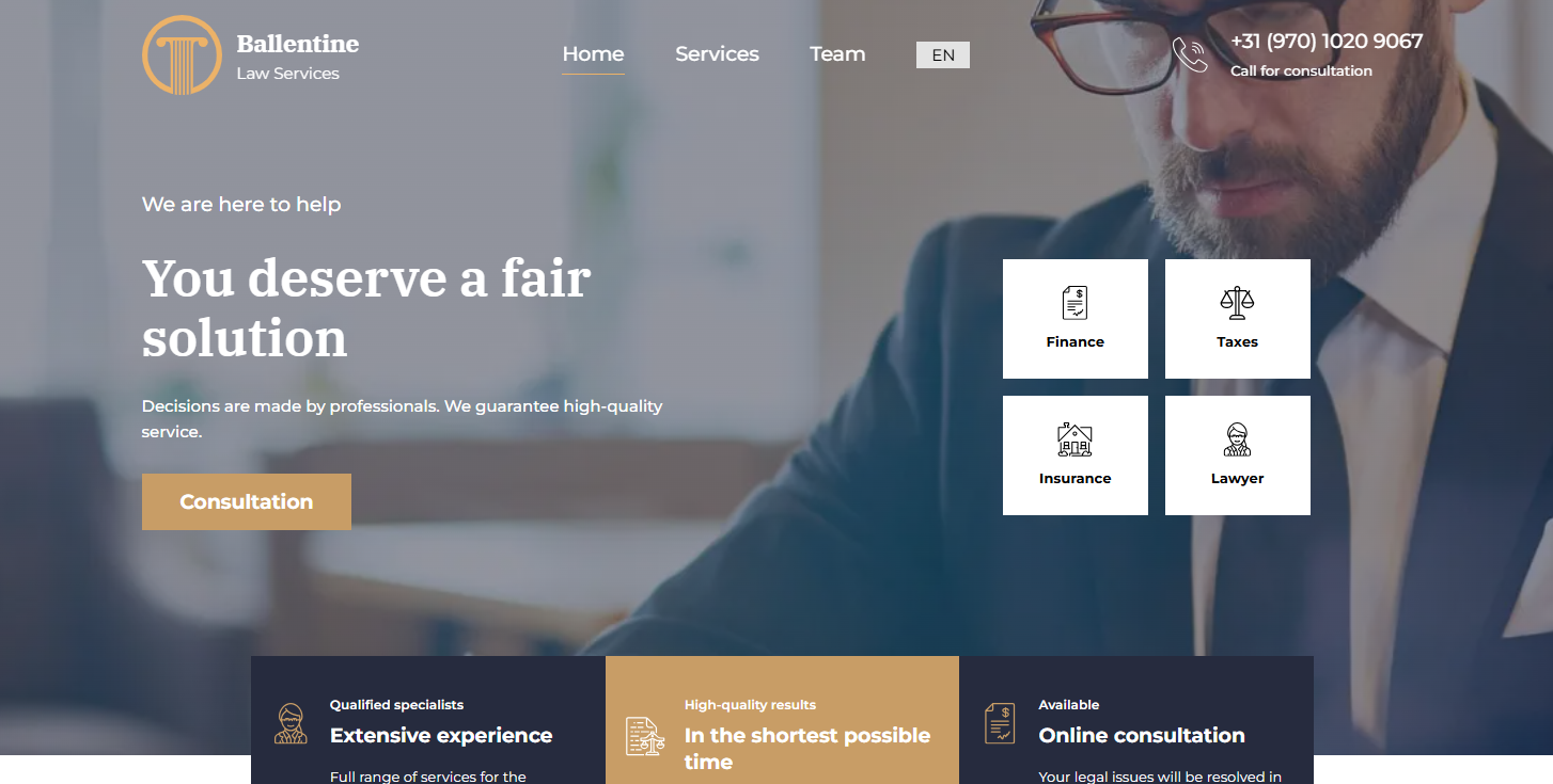Никакая реальная юридическая фирма не станет лгать о своем опыте работе и не выберет столь примитивный дизайн собственного веб-ресурса!