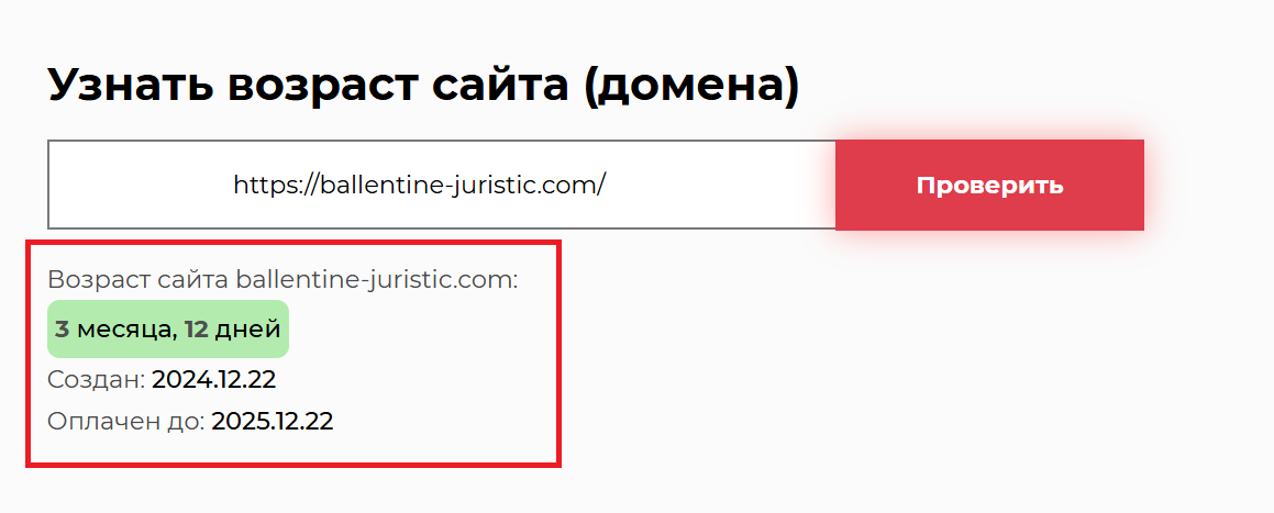 - сайт проекта был создан около 3 месяцев назад (22 декабря 2024 года);