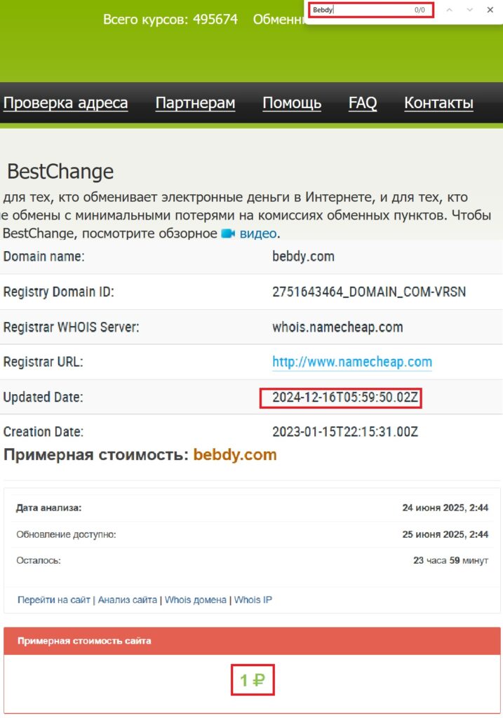 Информация подается сухо и банально. Индивидуальность в Bebdy напрочь отсутствует. Примерная стоимость домена составляет только 1 рубль, что говорит о нежелании собственников вкладывать больше в имидж и безопасность своего творения. Для серьезных компаний подобный подход неприемлем. Также можно упомянуть о сроке жизни сайта. Он был зарегистрирован в начале 2023 года, но реальные признаки активности здесь появились лишь в декабре 2024.