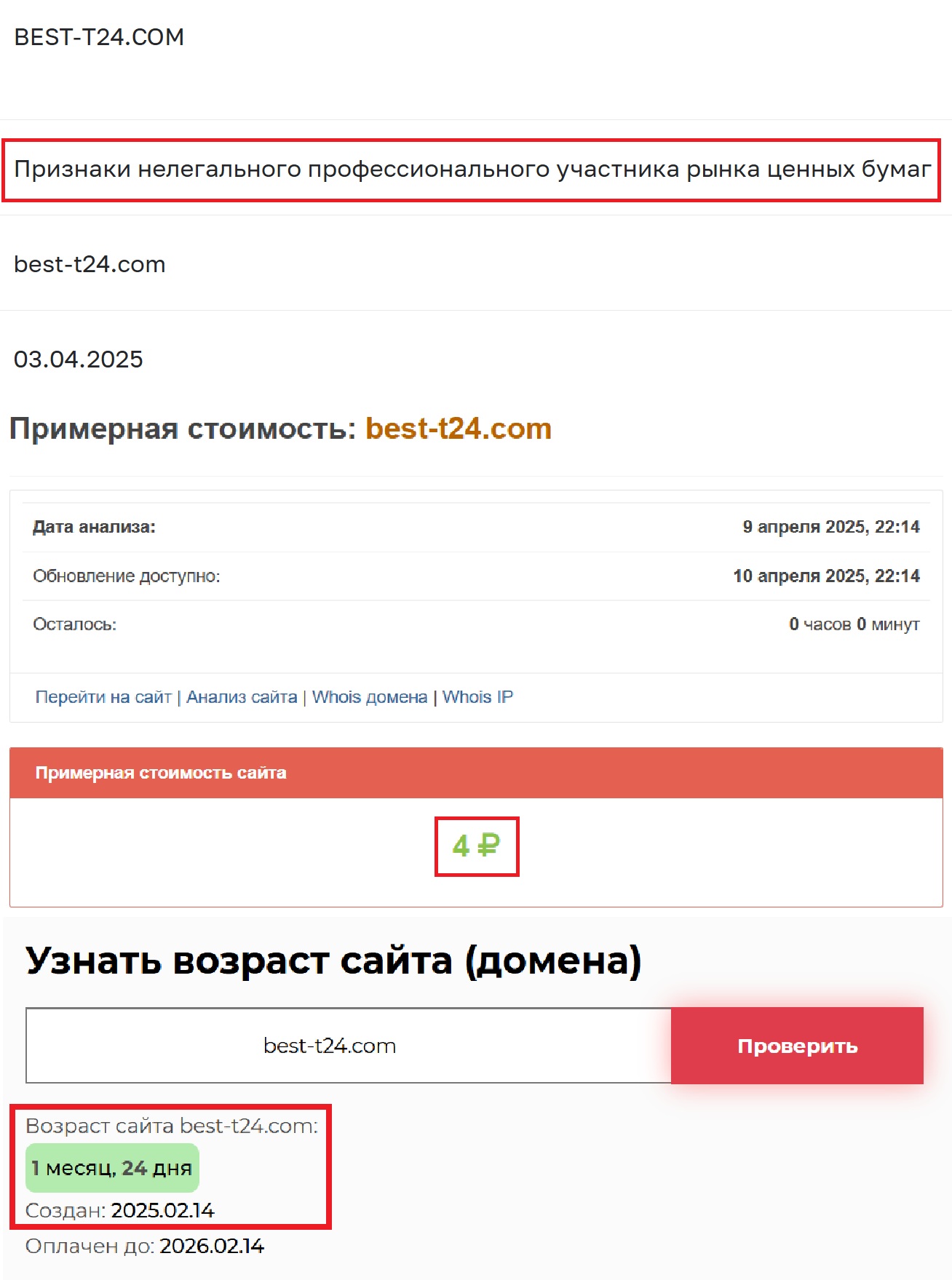 Вам, возможно, скажут, что у них опыт, команда экспертов, международная деятельность. Мол, все по высшему классу. Звучит внушительно, да? Но вот беда — ни документов, ни лицензий, ни хоть каких-то реальных подтверждений этим словам вы не найдете. А теперь внимание: по данным сервиса Whois домен, на котором размещен сайт Best Trade, существует с 14 февраля 2025 года. То есть компании нет и трех месяцев. А они уже вовсю рассказывают о «годы работы» и «доверии инвесторов». Честно говоря, это даже не смешно.