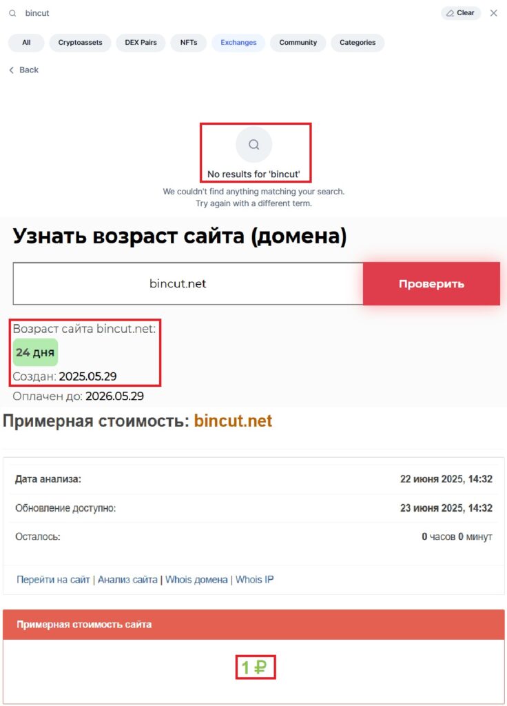 Начнем с того, что, как оказывается, домен проекта зарегистрировали меньше месяца назад (29 мая 2025). Получается, что контора, проработавшая от силы месяц, уже громко заявляет о своей серьезности, честности, безопасности и стабильном функционировании. Но многие солидные биржи на этом этапе лишь начинают тестировать режим работы, собирают важные документы и прочее.
