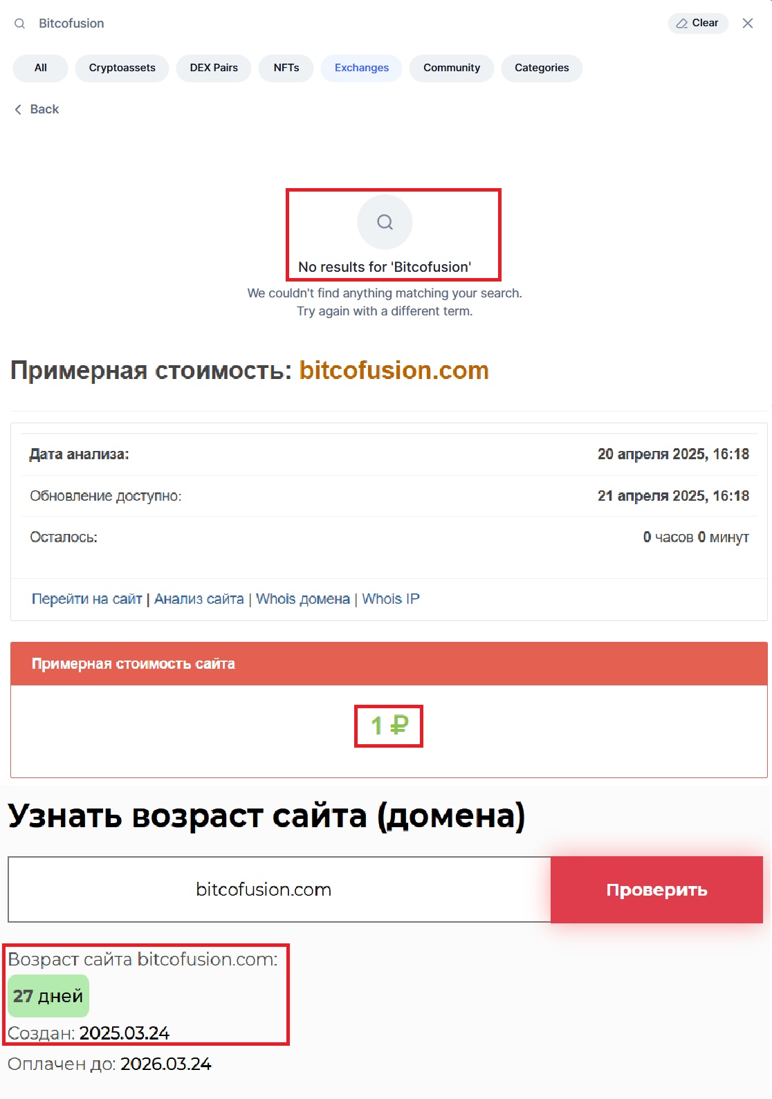 На недобросовестность данного проекта, к примеру, может указывать возраст и примерная стоимость домена. После анализа сайта на специализированных сервисах можно узнать, что он был создан всего месяц назад. Это вызывает подозрения из-за того, что аферисты во всю кричат о своей надежности и наличии у них хорошего опыта работы на рынке. Отметить можно и результат оценки ресурса, который равняется к 1 рублю. Такой показатель попросту неприемлем для площадок, называющих себя серьезными и перспективными.