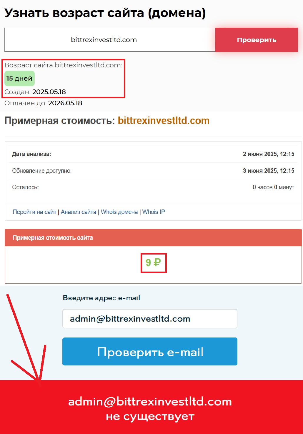 Мы провели технический анализ домена. На первый взгляд, сайт выглядит как старый и проверенный. Но это ложь. Настоящая активность началась всего 15 дней назад, то есть 18 мая 2025 года. Вы ведь согласитесь, что это явно не срок работы престижного проекта. И еще один нюанс, который мы никак не могли проигнорировать. Стоимость сайта — девять рублей. Буквально. Это не метафора. Вы серьезно думаете, что с таким подходом кто-то планирует реально выводить вам прибыль?