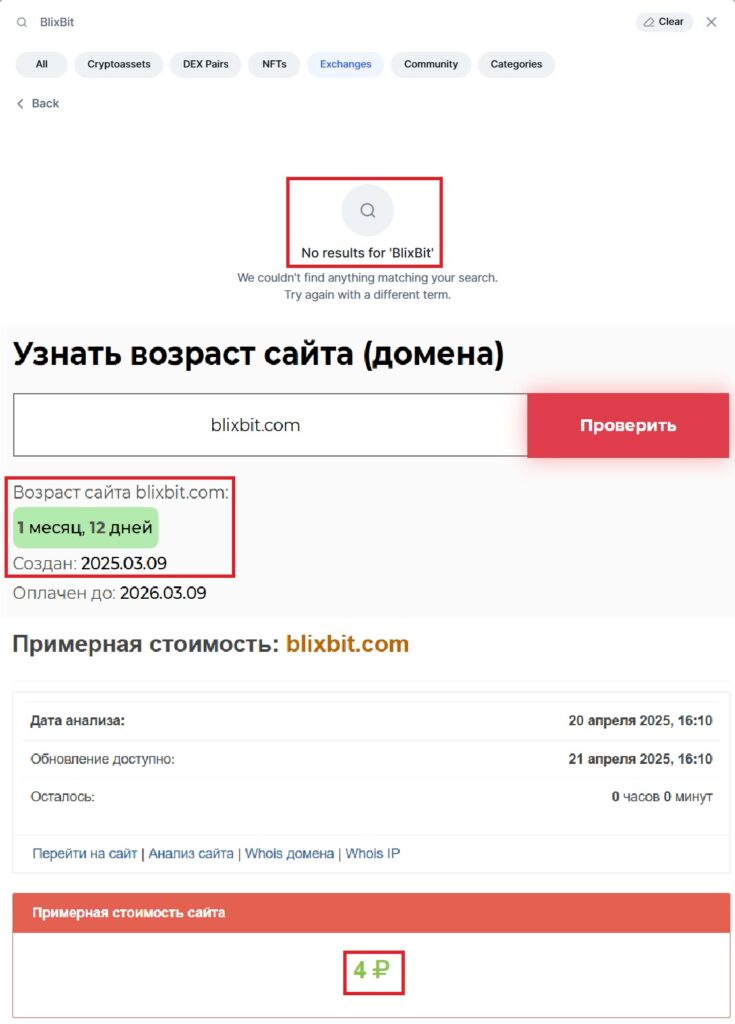 Как выясняется, домен BlixBit был создан около месяца назад, что говорит о малом возрасте конторы. Несмотря на это, ее владельцы не стесняются рассказывать о своем солидном опыте и прочем. Примерная стоимость сайта также не внушает доверия, поскольку составляет всего 4 рубля. Это говорит об использовании мошенниками максимально простого и дешевого дизайна. Оформление биржи вообще кажется знакомым, не так ли? Если вы тоже так подумали, то не удивляйтесь. Шаблон проекта уже был замечен на многих других жульнических площадках.
