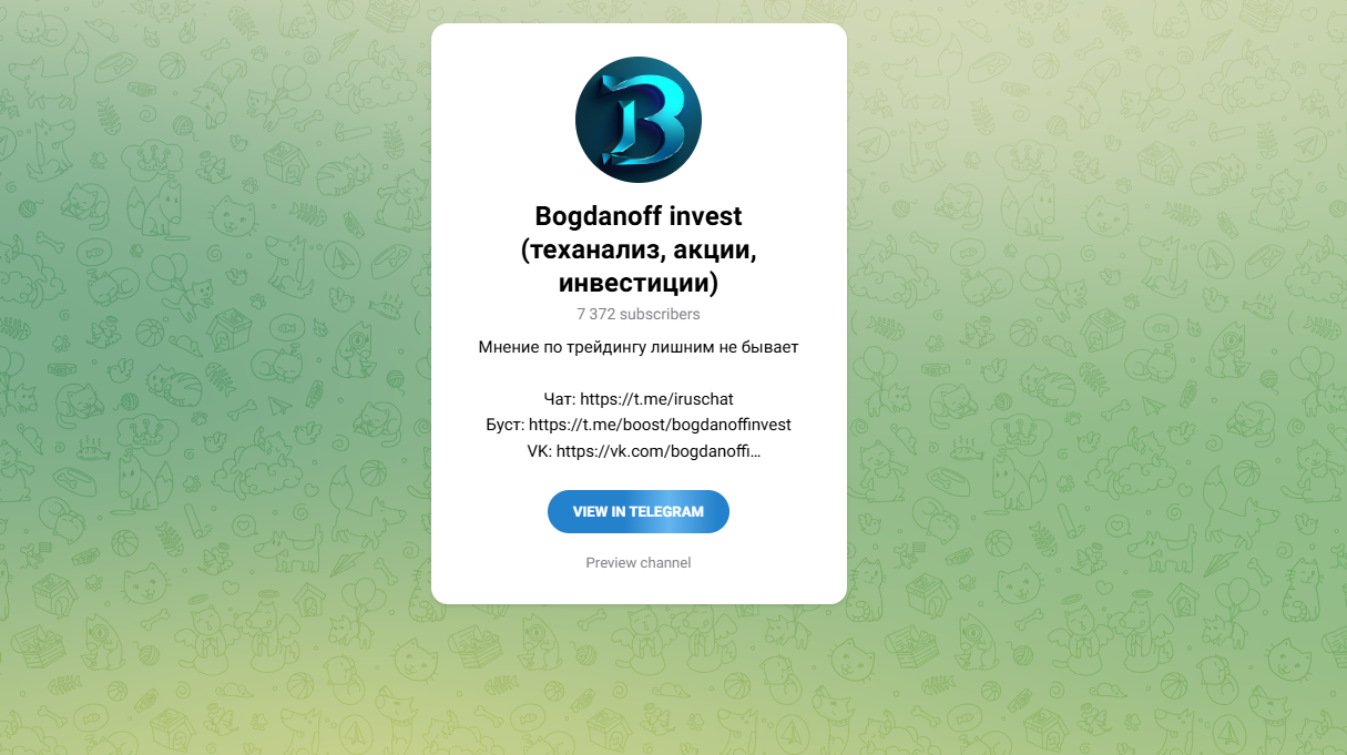 Не стоит упускать и то, что подписчики не имеют никаких гарантий относительно получения дохода при использовании платных услуг автора Bogdanoff invest (теханализ, акции, инвестиции).