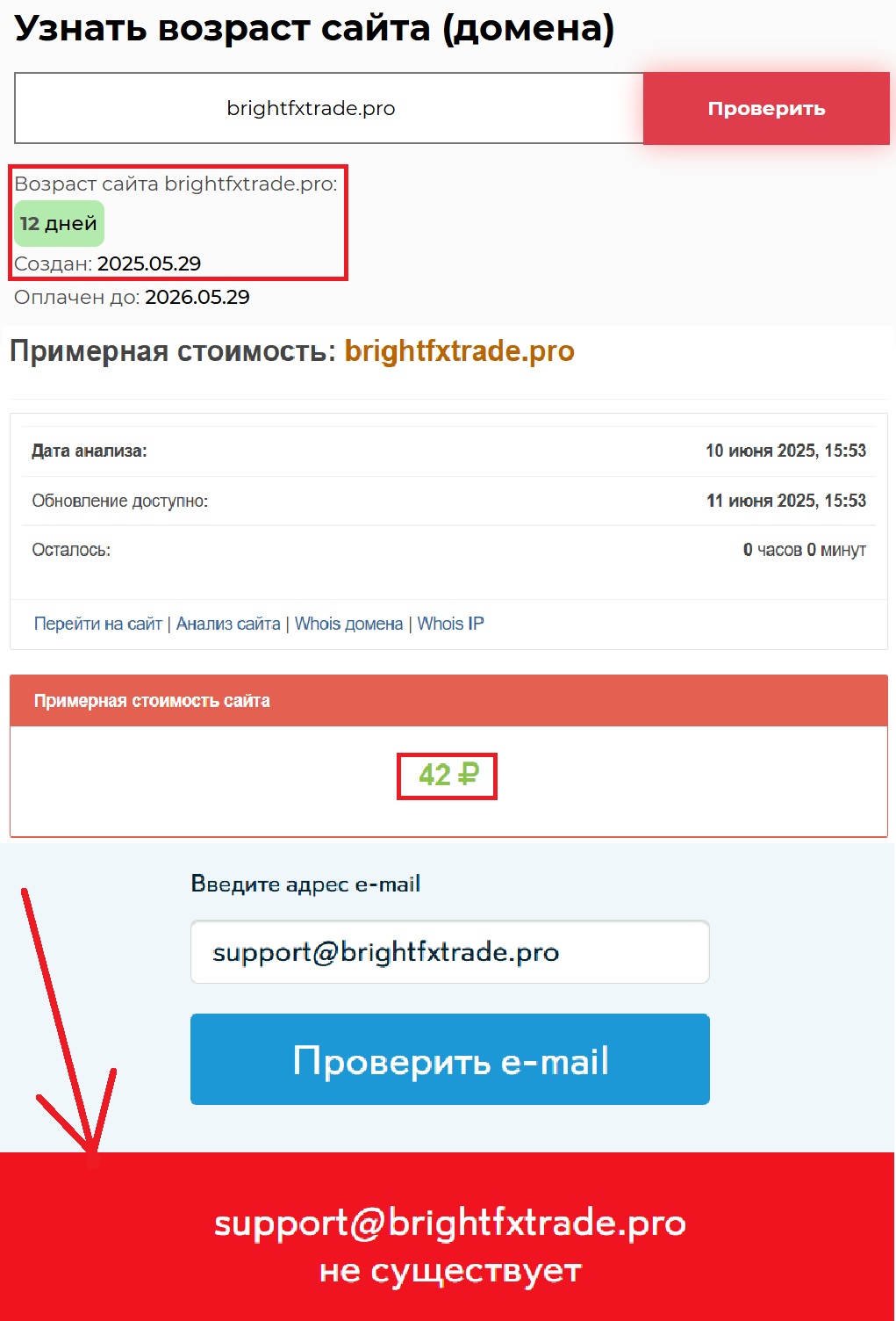 А как насчет лицензий? Регистрации? Хоть каких-то официальных бумаг? Увы, все это — лишь в воображении авторов проекта. Мы проверили — и российские реестры, и международные базы. Результат предсказуем: никакой Bright Fx Trade в списках нет. Ни в Центральном банке, ни в каких-либо лицензирующих органах. То есть перед нами организация, которая не просто играет в брокера, а банально нарушает закон. Причем делает это с удивительной наглостью. Связаться с представителями «компании» тоже невозможно. Указана только фейковая почта support@brightfxtrade.pro.