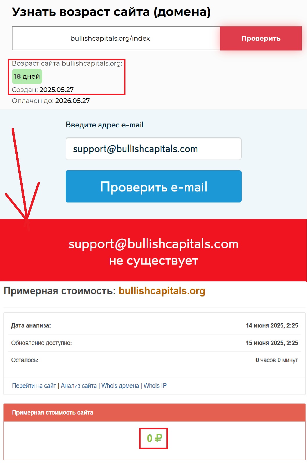 А как же доказать, что эта компания — обман? В этом нам помогут сервисы Whois и Seolik, которые показывают, что сайт заработал меньше месяца назад, а именно 27 мая 2025 года. Задумайтесь, всего 18 дней! За такой короткий срок ни один приличный брокер не успеет построить репутацию, а значит, здесь нечего ловить. Цена домена — всего ноль рублей — тоже красноречиво говорит о том, что перед нами не серьезный игрок рынка, а дешевая подделка.