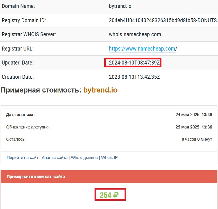Стоимость домена? 254 рубля. Это, знаете ли, не то, что вызывает доверие. Ни один серьезный проект не начинается с покупки домена по такой цене. А ведь Bytrend позиционирует себя как крупного игрока с мощной командой. Где эта команда? Где хоть какие-то доказательства ее существования? Мы не нашли ни одного.