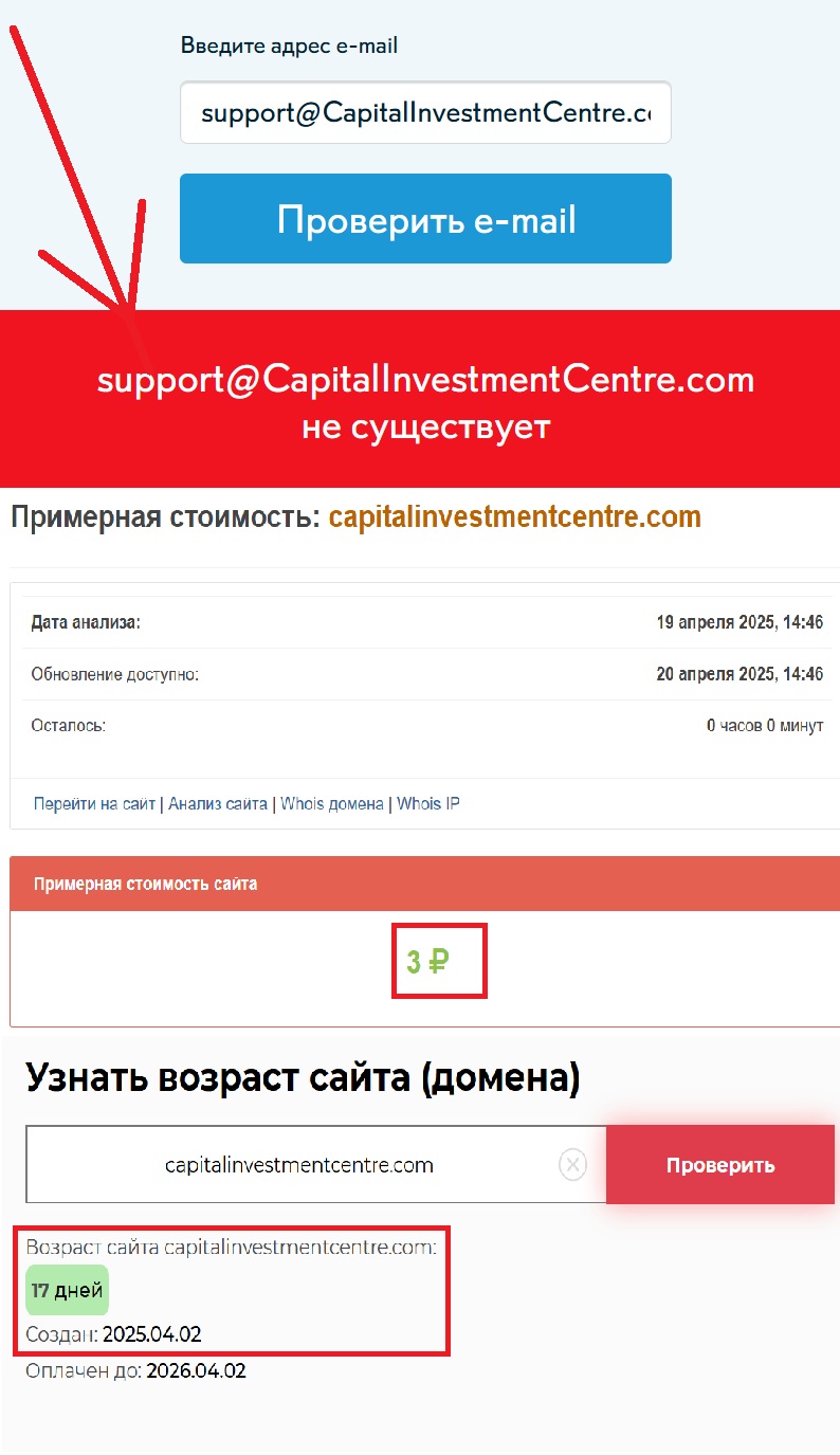 Мы решили не верить на слово и провели собственное расследование. Оказалось, что домен был зарегистрирован всего 2 апреля 2025 года. То есть, когда компания утверждает, что работает «много лет» — она нагло врет. У нее просто нет физически этого «опыта». И вот тут, согласитесь, становится совсем неприятно: людям врут в лицо, даже не стараясь замаскировать ложь. Да и о каком международном инвестировании и сотрудничестве может идти речь когда герой данного обзора использует сайт стоимостью всего три рубля.