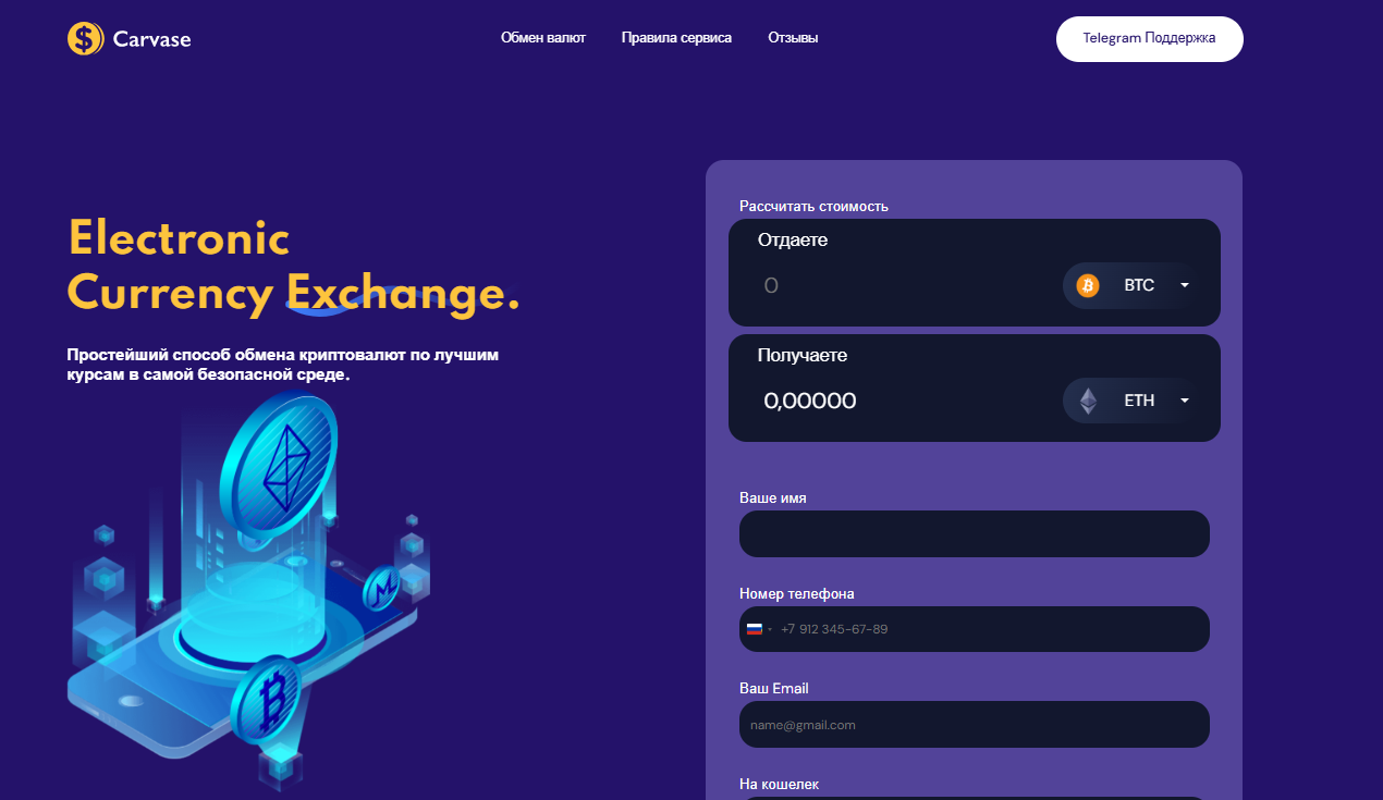 С каждым днем становится все тяжелее найти надежный и безопасный обменный пункт. Кажется, что все просто: выбрали ресурс, ввели данные, нажали несколько кнопок и получили желаемое. Однако это совершенно не так. В Интернете нынче функционирует огромное количество фальшивых проектов, созданных наглыми аферистами с целью выманивания средств с доверчивых пользователей. К перечню таких лохотронов можно отнести Carvase.