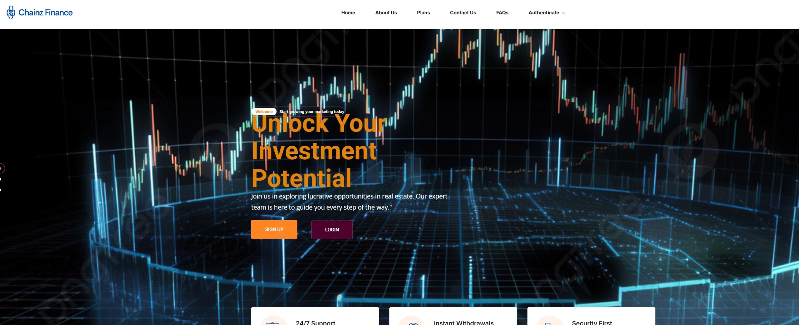 Давайте скажем честно: сайт chainzfinance.com — это та же самая подделка, какую мы уже не раз встречали в прошлых обзорах. Он построен на стандартном шаблоне, который давно известен специалистам в сфере кибермошенничества. Такое ощущение, что авторы даже не пытались как-то выделиться или сделать продукт, вызывающий доверие. И зачем, если у них другая цель? Их задача — убедить вас вложить деньги. Остальное для них неважно.