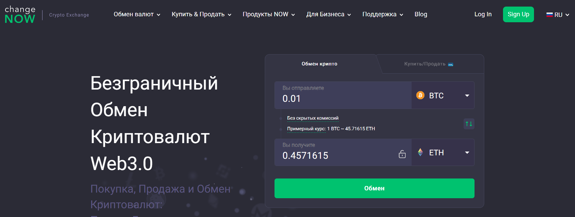 Этот криптовалютный обменник представляют как удобный инструмент для обмена более 700 криптовалют и 75 фиатных валют. Его создатели предлагают потенциальным клиентам возможность обмена активов и фиатных средств без регистрации. Такой момент делает проект привлекательным для тех, кто ценит конфиденциальность.