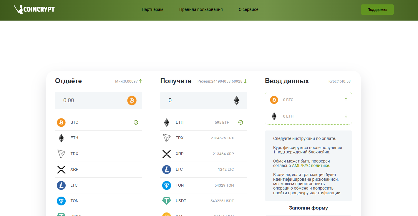 Пользователи, только начинающие знакомство с крипторынком, часто становятся жертвами наглых аферистов, которые только и ждут, пока неопытные и доверчивые юзеры поведутся на их сказки. Ставки на таких инвесторов сделали и собственники фальшивого обменного пункта CoinCrypt. Они представляют свое творение, как один из лучших проектов для обмена валют, обещают клиентам комфортное и выгодное сотрудничество, и даже прибыль. Но как дела обстоят в реальности? Совершенно не так, как о том было заявлено шарлатанами. Их площадка является ярким примером воплощения классической схемы обмана.