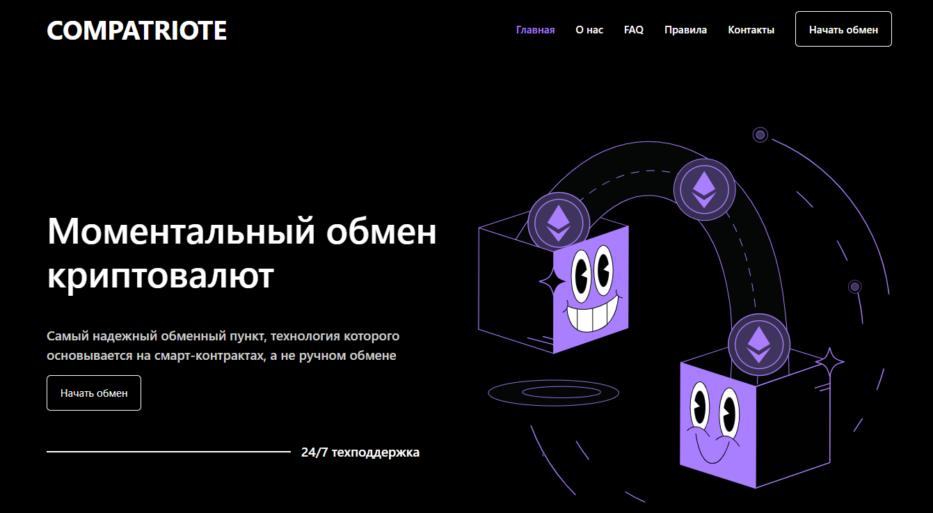 Представляем вашему вниманию еще один недобросовестный и опасный фальшивый обменный пункт. Compatriote позиционируется в Интернете, как один из лучших обменников с низкими комиссиями, мгновенными транзакциями и максимально комфортными условиями сотрудничества. Но, что интересно, все эти преимущества столь красивы лишь в рекламной кампании проекта. На деле же их просто не существует. Мошенники успешно используют привлекательные обещания и предложения, чтобы завлечь как можно большее количество доверчивых пользователей в свою ловушку и кинуть тех на крупные суммы.
