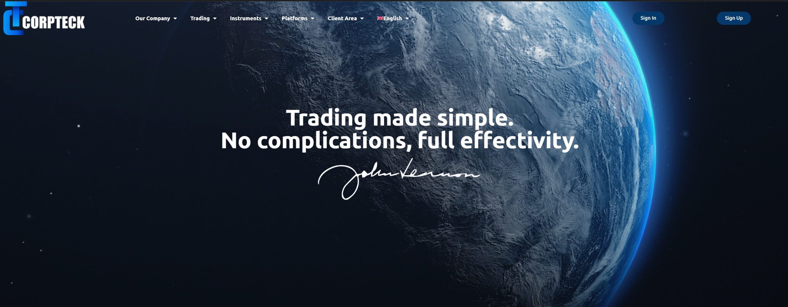 Первое, что стоит сделать — заглянуть на их сайт. Corpteck разместил свою площадку по адресу corp-teck.com, и если вы хоть раз видели сайты сомнительных инвест-компаний, то тут вас ничто не удивит. Это очередной шаблонный проект, созданный на скорую руку. Те же блоки, те же стандартные тексты, просто поменяли название, перекрасили кнопки и запустили в сеть. Задача у таких мошенников не создать надежный инвестиционный сервис, а как можно быстрее вытащить деньги из карманов доверчивых пользователей.