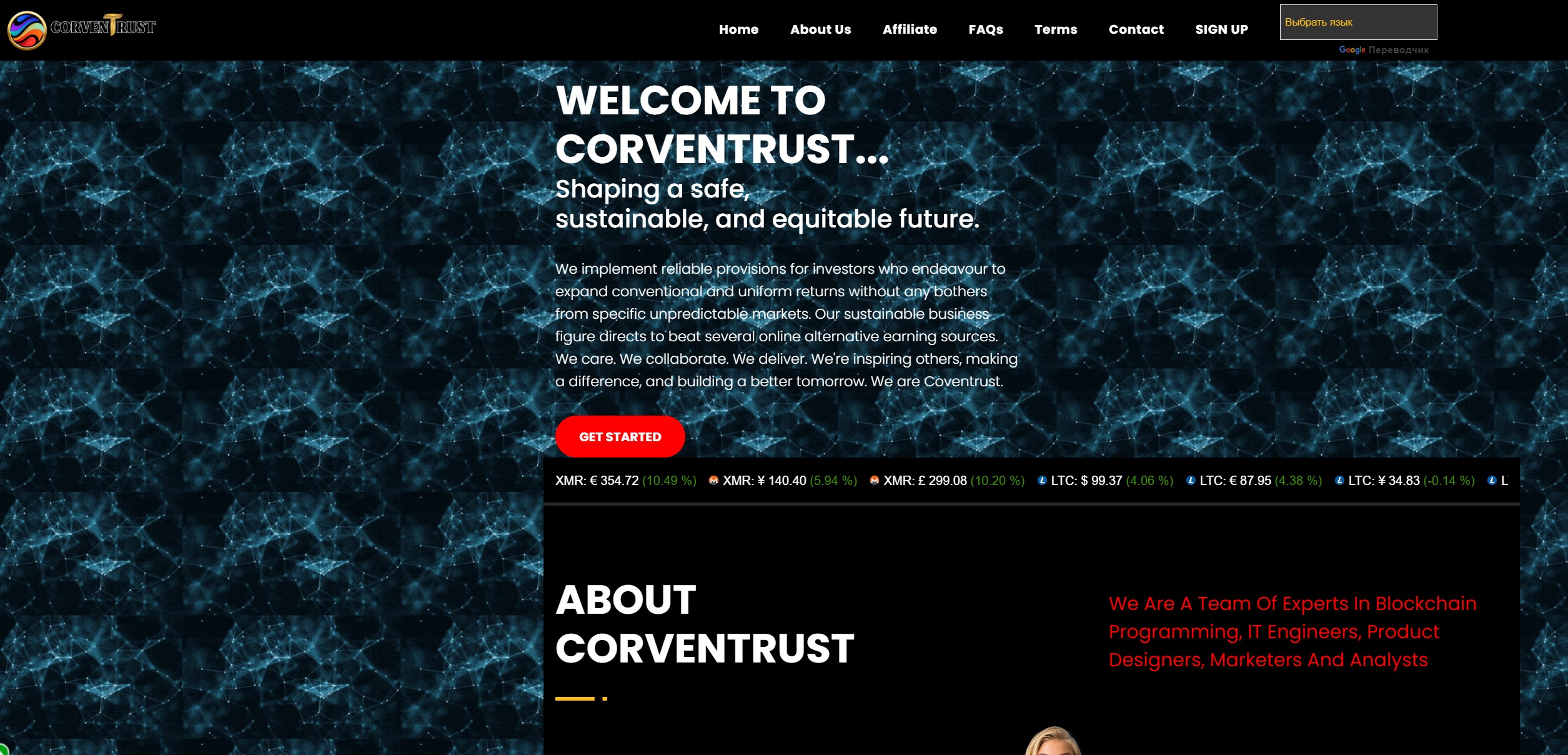 Знаете, с чего все начинается? С сайта. Да, с того самого ресурса, через который вы взаимодействуете с «платформой». И вот тут хочется просто развести руками. Corventrusst.com — это не сайт, это копипаста. Мы видели этот шаблон десятки раз. Мошенники взяли готовый макет, поменяли логотип, вставили пару новых фраз про «опытную команду» и «прибыль 24/7» — и все. Ресурс выложили в сеть, не утруждая себя чем-то оригинальным или хоть минимально достоверным.