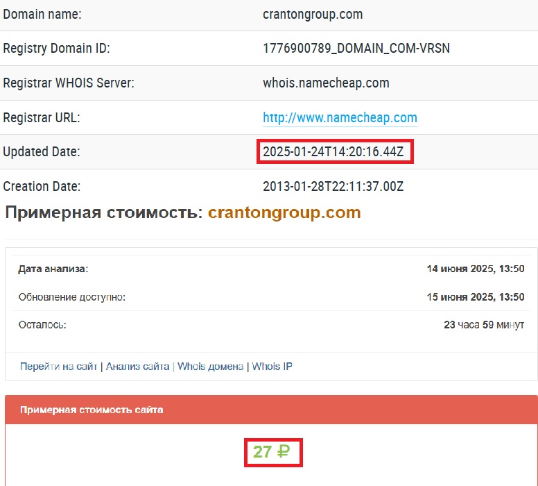 Достаточно посмотреть на сам сайт crantongroup.com — примитивный, построенный по шаблону, словно сделанный на скорую руку. Создатели даже не пытались создать что-то уникальное, просто переименовали готовый макет и запустили очередной временный проект. Whois подтверждает это: проекту меньше пяти месяцев, хотя на главной странице уверяют о многолетнем опыте работы. Звучит как издевательство, не правда ли? Подобные мошенники обычно не заинтересованы в создании качественного сервиса — для них важнее собрать деньги как можно быстрее и исчезнуть.