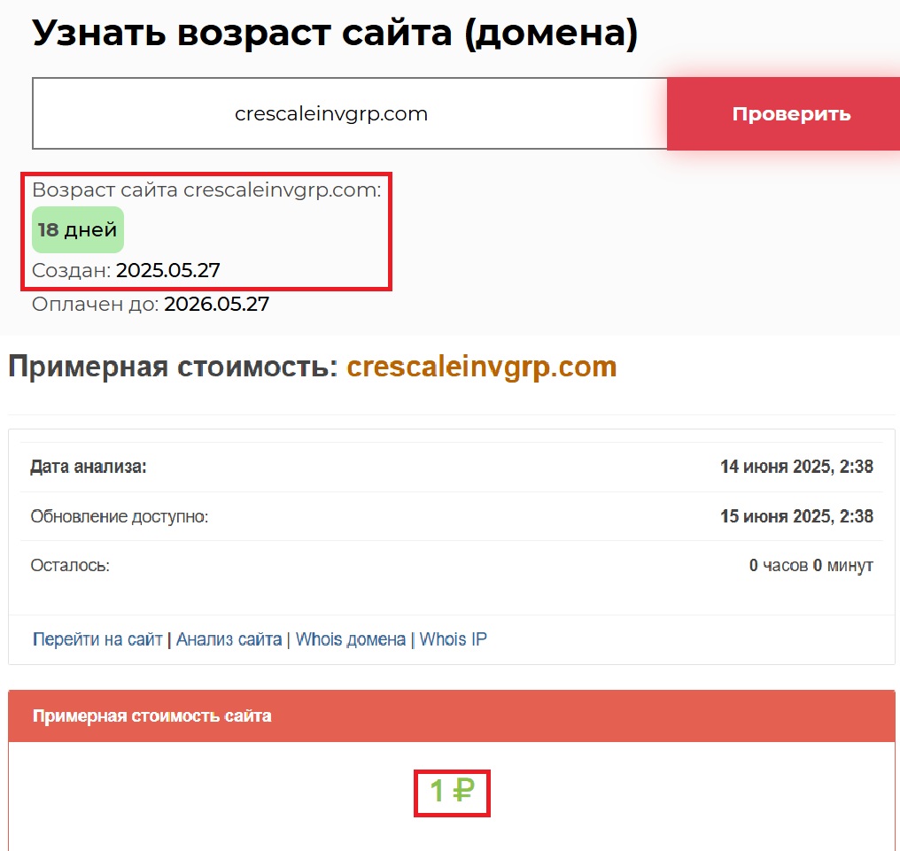 Самое интересное, что за «опыт работы» CRESCALE investment group скрывается проект, который стартовал всего 18 дней назад — с 27 мая 2025 года. Ну и цена в один рубль говорит сама за себя: никакого «уникального функционала» и «огромных заработков» здесь просто нет. Лицензии у компании нет, а значит, никакой правовой защиты для ваших средств тоже. Такая контора может исчезнуть в любой момент, забрав с собой деньги вкладчиков.