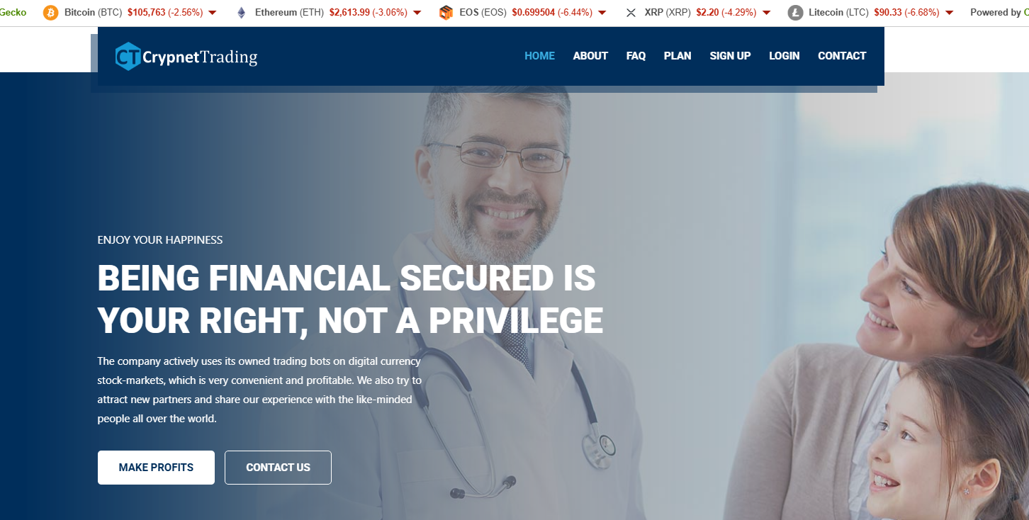 Crypnet Trading представляет собой платформу, которая якобы является крупнейшим институциональным владельцем криптовалют и катализатором инноваций в блокчейн-отрасли. Фирма предлагает клиентам инвестиционные планы с ежедневной прибылью от 2% до 15% и комиссионные до 8% за привлечение новых партнеров. Но отсутствие прозрачности, лицензирования и подтвержденной регистрации вызывают серьезные опасения относительно честности и надежности названой конторы.