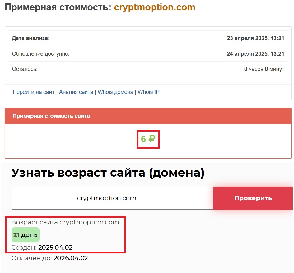 Чтобы не быть голословными, мы провели полноценную проверку ресурса. И вот тут становится особенно интересно. Домен сайта был зарегистрирован 2 апреля 2025 года. А теперь внимание: на самом сайте указано, что команда якобы имеет многолетний опыт работы. Получается, за 21 день они успели пройти путь от новичков до акул бизнеса? Звучит неправдоподобно, не так ли? Более того, сервис Seolik вообще показывает, что сайт стоит всего шесть рублей — и это прямой намек на то, что владельцы уже ищут, кому бы скинуть эту «компанию».