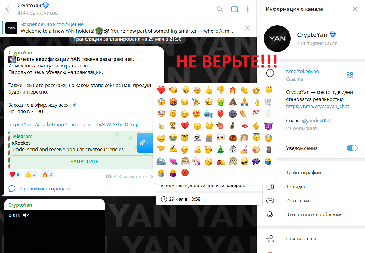 Для криптовалютного мира характерно стремительное развитие, из-за чего ежедневно в сети появляются десятки новых проектов, каналов и так званых «экспертов». Среди огромного количества ресурсов встречаются и те, главная цель которых заключается вовсе не в помощи новичкам и более опытным пользователям. Автора многих современных площадок выбирают заработок на доверчивости наивных людей. И именно таким путем решили идти создатели телеграм-паблика с названием CryptoYan.