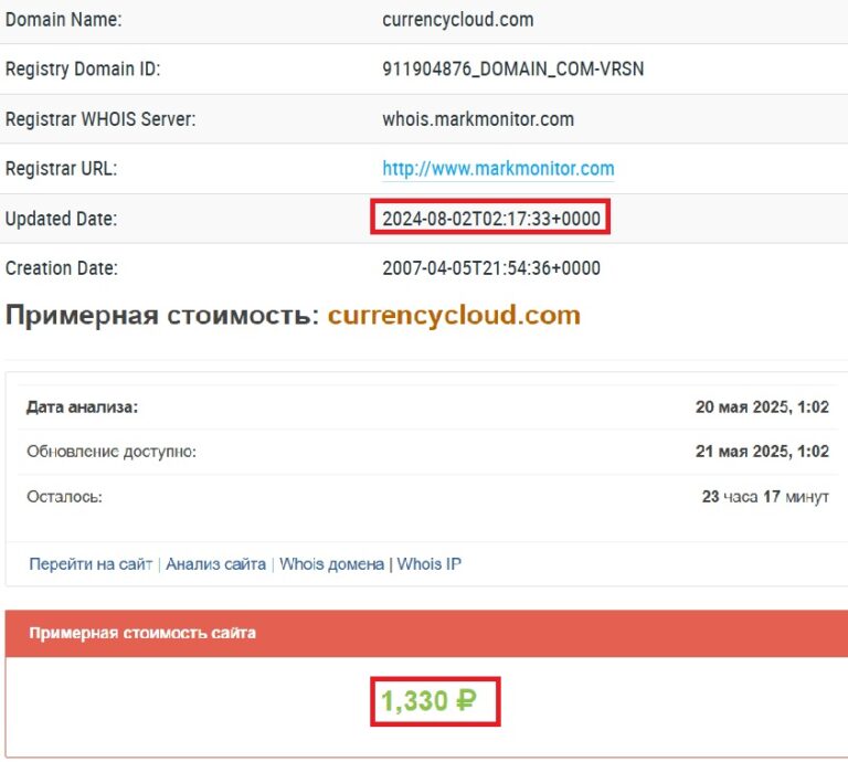 Сперва рекомендуем заняться проверкой домена компании. В нашем случае выясняется, что сайт был создан в 2007 году, но только в 2024 на нем начали активничать. Интересно, что жулики уверенно лгут о том, что работают больше 10 лет. Но лишь взглянув на реальные факты, вы тут же сможете разглядеть ложь в их словах.
