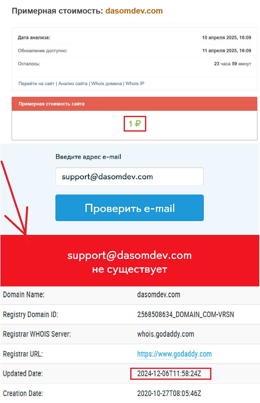 Кстати, совет: прежде чем верить подобным платформам, стоит провести хотя бы базовую проверку. Например, зайдите в тот же Whois и посмотрите возраст сайта dasomdev.com. В случае с Dasomdev — проект появился 6 декабря 2024 года. Четыре месяца! Для финансовой организации, которая якобы оперирует миллионами — звучит, мягко говоря, нелепо. Как доверять тем, кто появился буквально вчера?