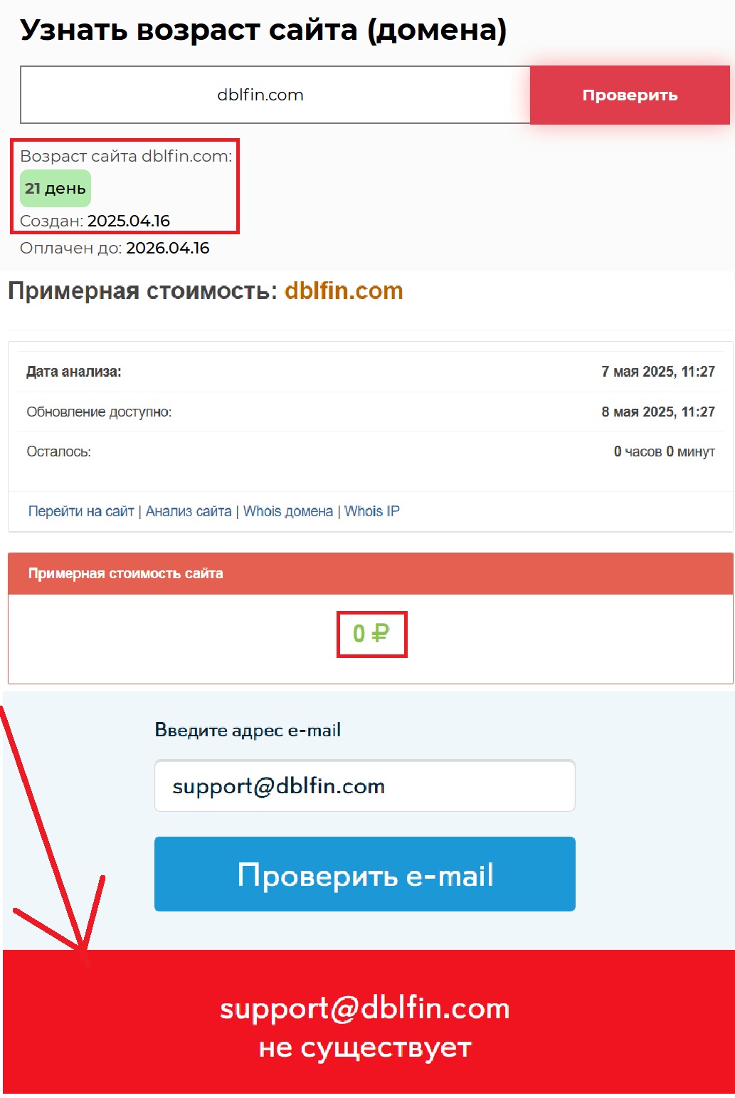 Особенно настораживает отсутствие контактной информации. Ни телефона, ни адреса, ни даже живой поддержки. Хотите задать вопрос — пишите в никуда. Ответа не будет. Единственная указанная почта support@dblfin.com полностью фейковая. Но ведь когда речь идет о деньгах, особенно чужих, поддержка — это не роскошь, а необходимость. Впрочем, в случае с DBLfin все выстроено так, чтобы вопросов не возникало. А если и возникнут — вы с ними останетесь один на один.