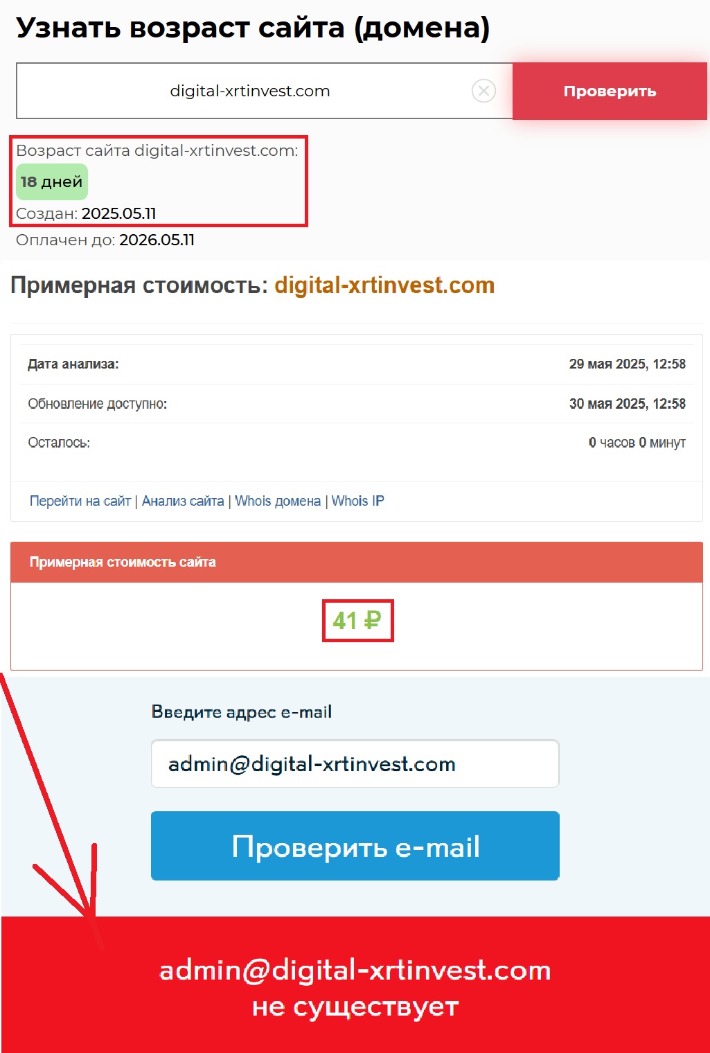Вывод? DIGITAL-XRT INVEST — это очередной фальшивый брокер, цель которого — не помогать вам зарабатывать, а вытянуть деньги, а потом исчезнуть, оставив только автоматические отписки на ваши письма. И да, если кто-то говорит вам, что “все легально, ведь сайт выглядит солидно” — просто покажите ему, сколько стоит домен этого “солидного” сайта. Все станет на свои места.