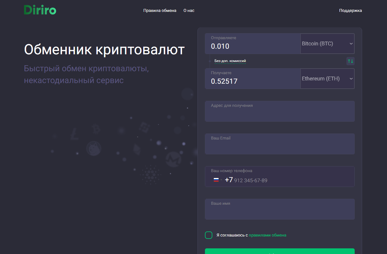 Diriro — это новый мошеннический обменник криптовалют, на сайт которого лучше даже не заходить. С первых же секунд платформа выдает признаки недобросовестности и подтверждает сомнения на ее счет.