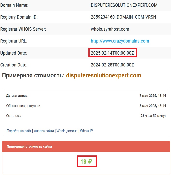 Начнем с проверки домена. Как выясняется, он был зарегистрирован 28 февраля 2024 года. Активная работа на платформе началась лишь 14 февраля 2025. Все это уже вызывает немало сомнений, поскольку лжеюристы заявляют о своем «многолетнем опыте», а на деле работают чуть больше года.