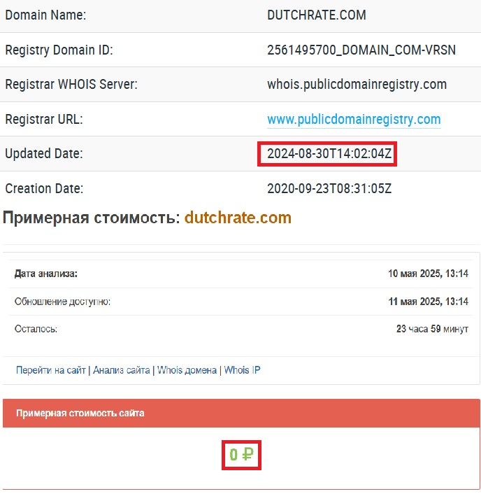 А теперь обратимся к фактам, потому что именно они все расставляют по местам. Dutch Rate существует всего с конца августа 2024 года — чуть больше 8 месяцев. То есть, площадке нет и года. Это даже не смешно. Настоящие компании годами строят репутацию, а тут столь мизерный срок. И конечно же, аферисты купили старый домен, зарегистрированный в 2020 году чтобы не вызывать вопросов у новичков. И уже «успешная» торговля, тысячи довольных клиентов и какие-то виртуальные проценты. Цена вопроса? Ровно ноль рублей. Но как раз такие мелочи и заставляют задуматься: если проект серьезный, зачем ему привлекать клиентов через такие примитивные трюки? Легальная компания не станет играть в дешевые фокусы.