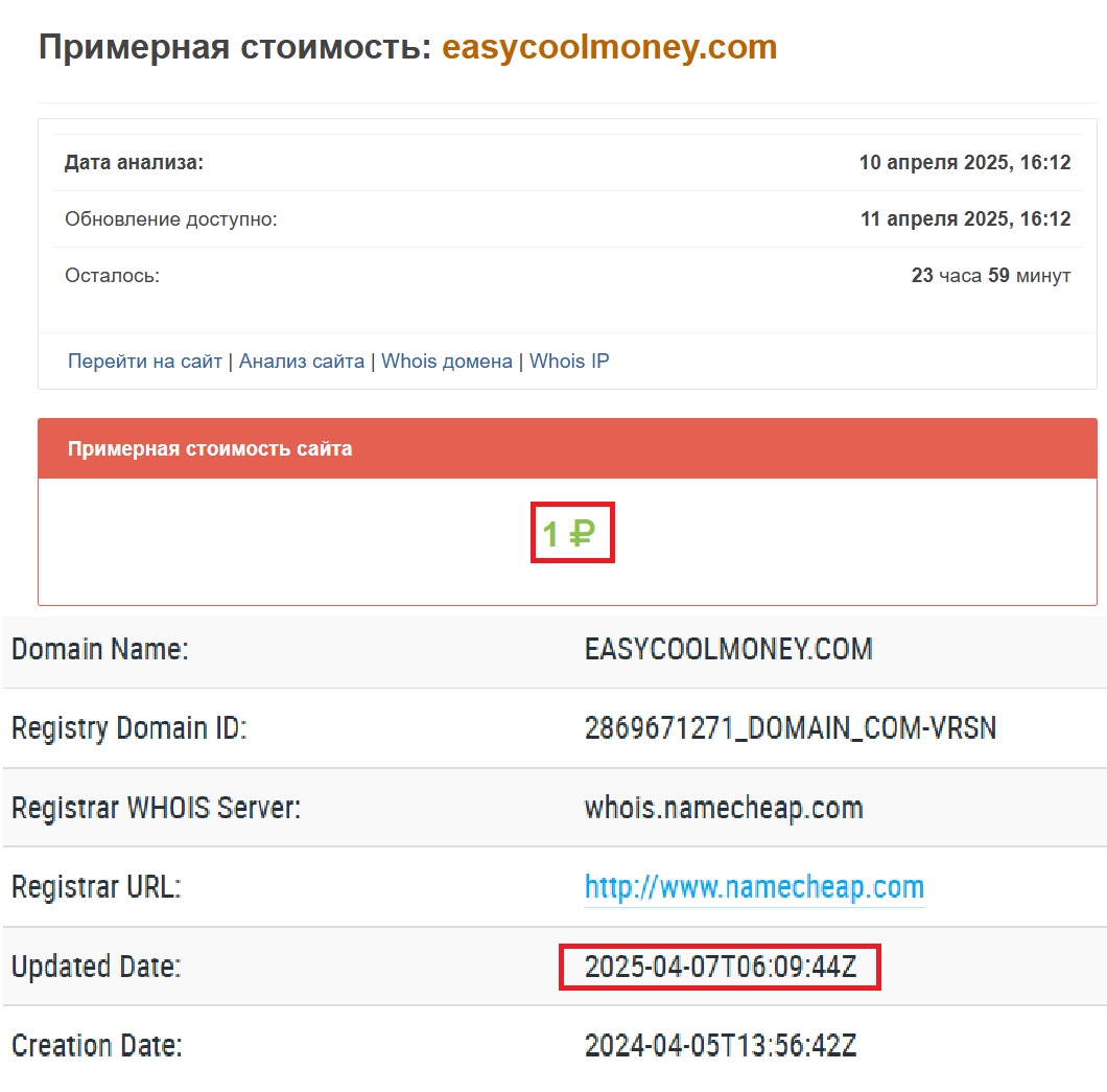 А еще — внимание на стоимость домена. Да, это мелочь, но она многое говорит. Один рубль. Вы только вдумайтесь: они даже не потратились на нормальный домен. Серьезная компания? Серьезный подход? Нет. Скорее — примитивный и дешевый лохотрон, который закроется в любую минуту.