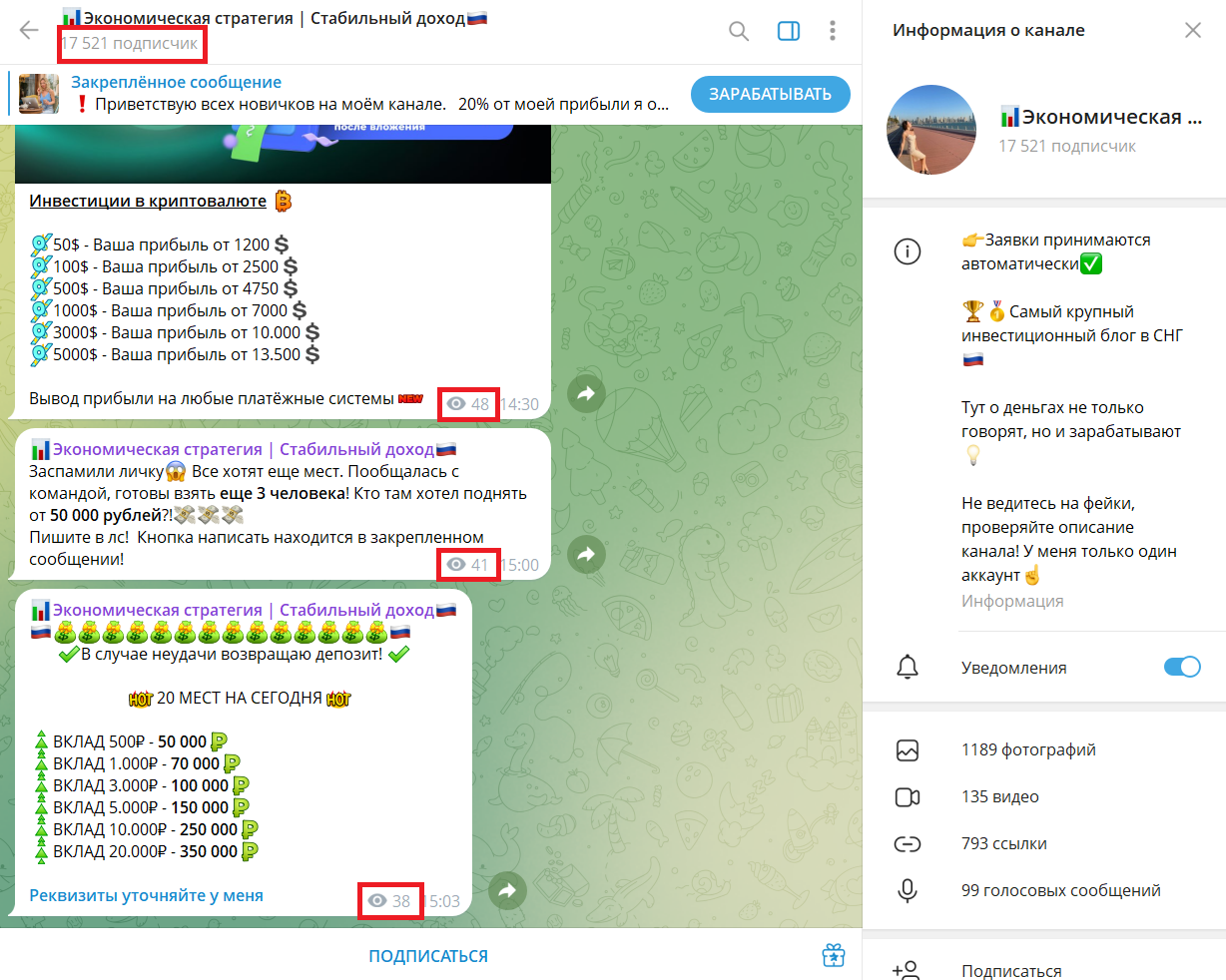 Недавно мы наткнулись в Телеграм на очередной подозрительный проект — Экономическая стратегия | Стабильный доход. Заинтересовавшись его деятельностью, нашими специалистами была организована проверка канала и сегодня мы готовы поделиться ее результатами.